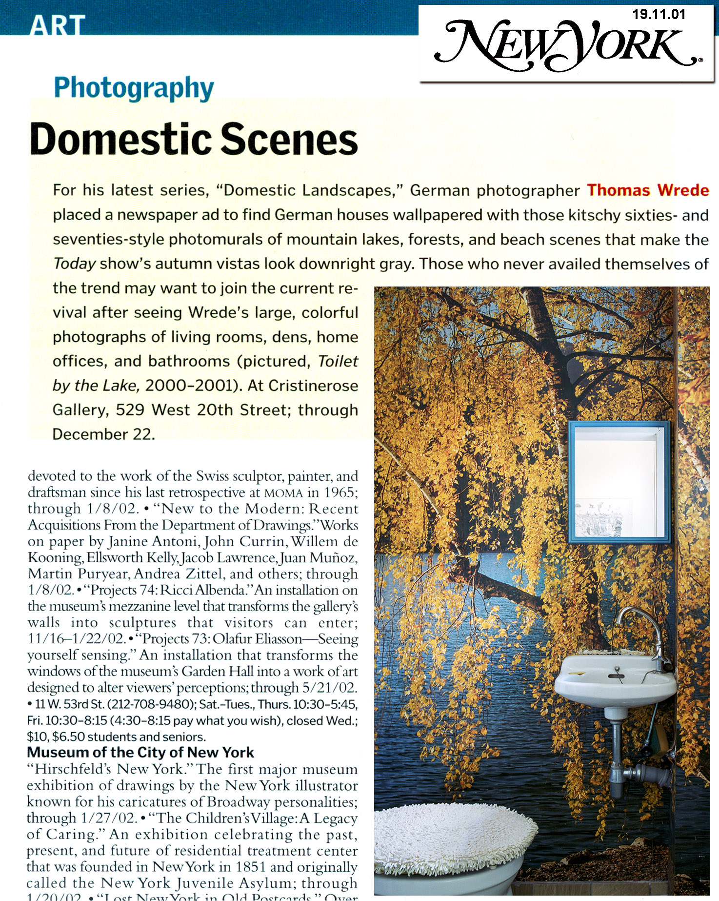 Thomas Wrede, Domestic Landscapes, Cristinerose Gallery, New York, 2001