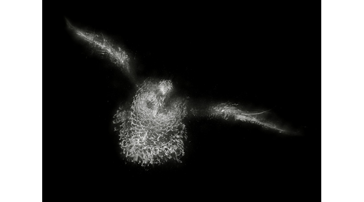 In der Ausstellung präsentiere ich 5 Schwarzweiß-Fotografien aus der Serie "Die Vögel stehen in der Luft und schreien", 1994/2017. Die großformatigen Fotogtafien (235 x 140 cm) geben Aufprallspuren von Vögeln wieder, die beim Zusammenprall gegen Fensterscheiben entstanden sind ("Vogelschlag"). Im Gegenlicht der Sonne verwandeln sich die Spuren aus Staub, Blut und Fett zu detailreichn Zeichnungen.