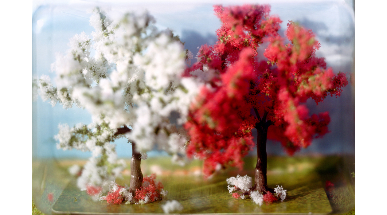 Foto: Thomas Wrede . Wrapped Landscapes . Blühende Obstbäume . 2004 . 120 x 180 x 9 cm
