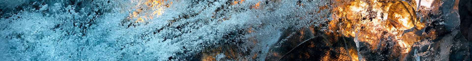 Seit 2017 erarbeite ich diverse fotografische Werkreihen über das Abschmelzen der alpinen Gletscher. Hierbei interessieren mich besonders die Vliesabdeckungen zum Schutze der Gletscher und Schneefelder. 2020 sind Aufnahmen von Schneefeldern mit rosa-rotem Blutschnee am verhüllen Presena Gletscher (Südtirol) dazu gekommen. Am Rhonegletscher bin ich auf spannungsreiche Außen- und Innenansichten der Gletscherhöhle gestoßen. Außen sind die Schichten der verwitterten Tücher, Folien und Vliesbahnen der letzten Jahre zu sehen. Im Innenraum habe ich im bläulich schimmernden Eislicht die jahrhundertealten Schichtungen des glasklaren oder auch milchigen Eises fotografiert. Ich bin mit der Kamera unter das schmelzende Eis gegangen, wo es hauchdünn ist und erste Löcher aufweist. Hier ist im Gegenlicht der Sonne jede Luftblase, zu erkennen. Die Schatten der Vliesabdeckungen schimmern durch das glasklare Eis oder hängen durch Spalten und Löcher in die Höhle hinein.
